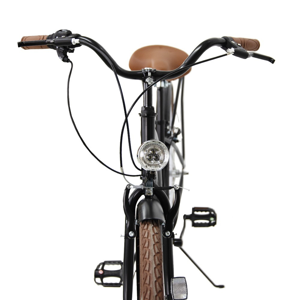 Bicicletă city pentru femei, cu roți de 28", cu prag jos de 45 cm, pentru urcare/coborâre ușoară.